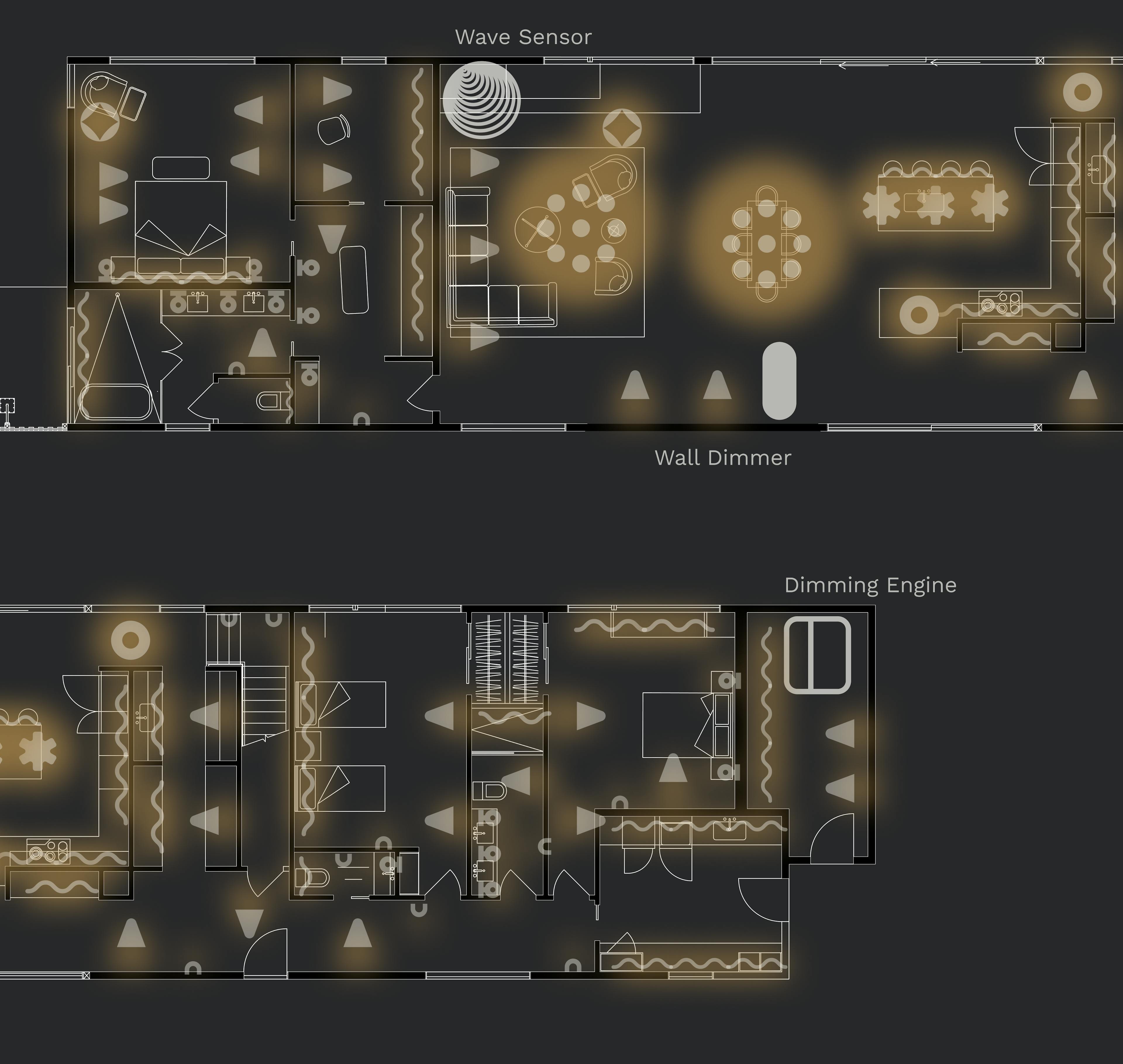 Homeowners experience optimal ambiance for resting, entertaining and tasks, as Lunul senses, learns and predicts the personalized rhythms of inhabitants at home to create perfect layers of light for each moment. All delivered through invisible technology that stays within the confines of the home, without need for manual interaction.